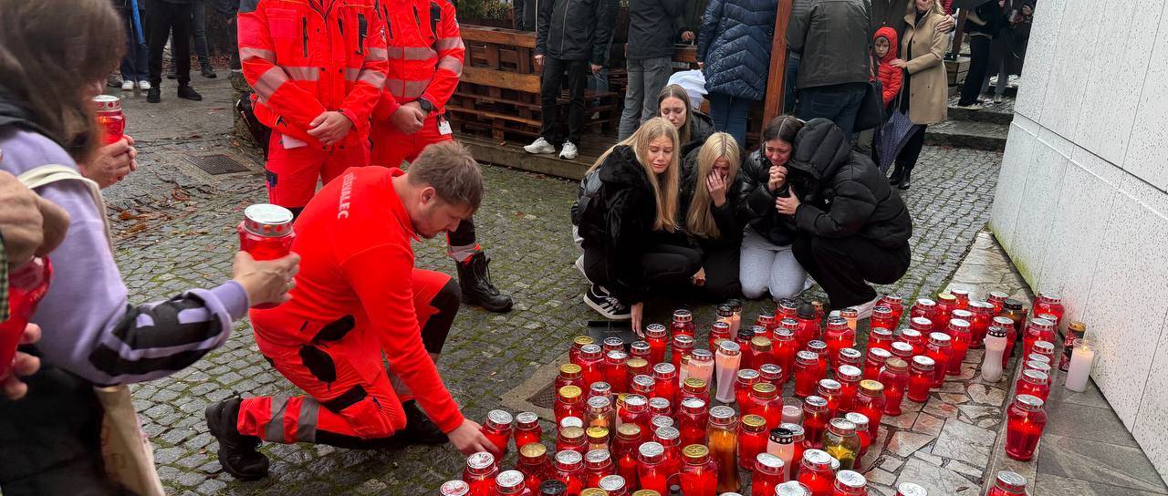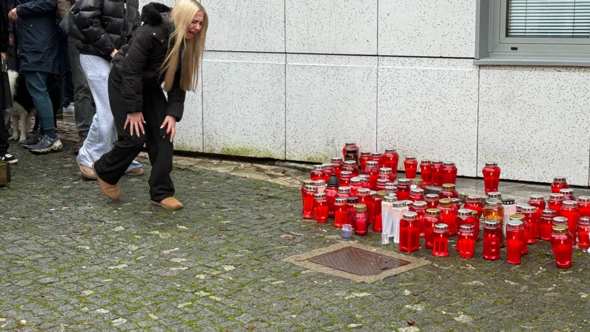 Pred lokalom na Rozmanovi ulici v Novem mestu se dopoldne zbirajo prebivalci, prijatelji in znanci tragično preminulega Aleša Šutarja. S prižigom svečk izražajo žalost in tiho podporo njegovi družini.