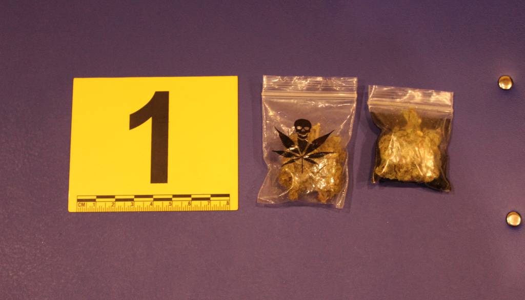 Na podlagi pridobljene odredbe sodišča so policisti še isti dan pri njemu opravili hišno preiskavo, saj so sumili, da poseduje prepovedano drogo. Med hišno preiskavo so našli dve manjši PVC vrečki s posušenimi rastlinskimi delci, za katere sumijo, da so prepovedana droga konoplja, digitalno tehtnico in gumijevko, ki spada med hladna orožja. Vse opisano smo mu zasegli.