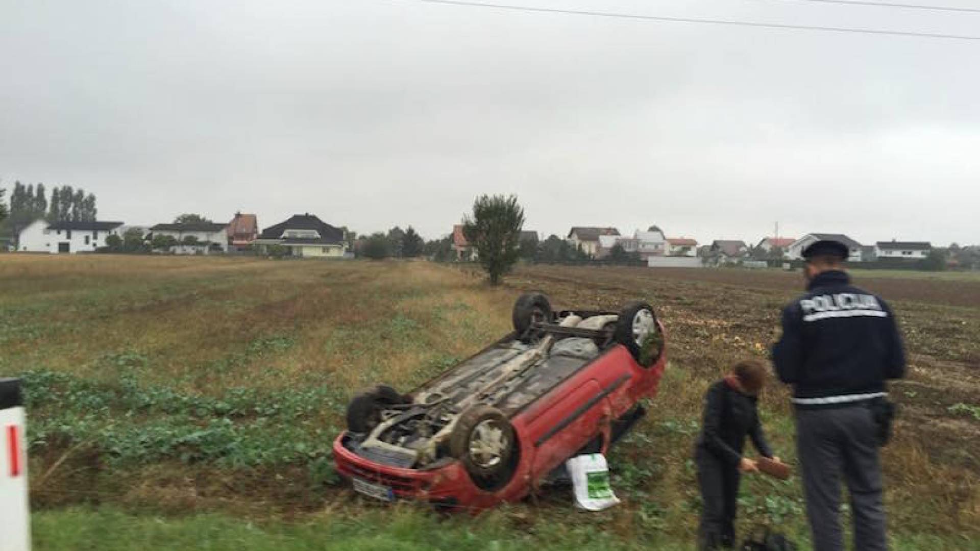 Danes nekaj minut čez tretjo uro popoldne, je voznica osebnega avtomobila Renault Clio v blagem ovinku izvem Murske Sobote v smeri Kroga oziroma avtoceste, zletala s ceste na njivo in pristala na strehi. Vzrok nesreče za zdaj ni znan, poškodovanih po neuradnih informacijah pa na srečo ni bilo.