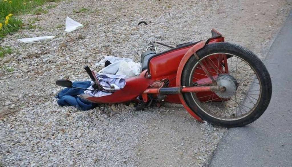 Voznik kolesa z motorjem ni posedoval vozniškega dovoljenja in je bil v nesreči hudo telesno poškodovan (zlom noge).