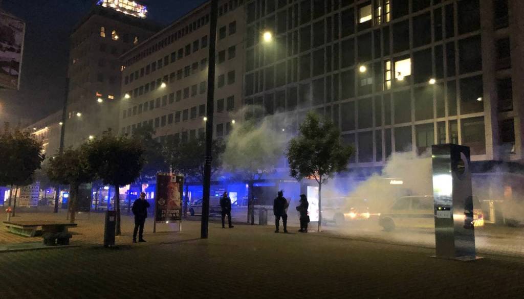 Nekaj pred 21. uro je bil javni red vzpostavljen, množica pa razgnana. Policisti so za razganjanje, v času ko je trajalo posredovanje policije na območju širšega centra Ljubljane, večkrat uporabili prisilna sredstva zoper množico, med drugim vodni curek, plinska sredstva, penaste naboje, konjenico in službene pse.