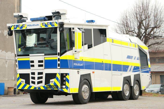 Posadka vodnega topa šteje pet policistov.
