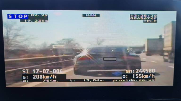 Med nadzorom cestnega prometa sta na avtocesti A1, na odseku Rogoza - Slivnica, kjer je hitrost omejena na 100 kilometrov na uro, ugotovila, da je ob 12.25 voznik osebnega avtomobila znamke Audi A7, ki ga je vozil 37-letni voznik, doma iz okolice Maribora, na razdalji 754 metrov vozil s povprečno hitrostjo 208 kilometrov na uro.