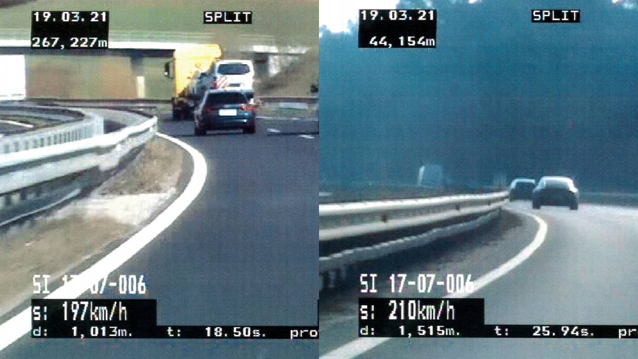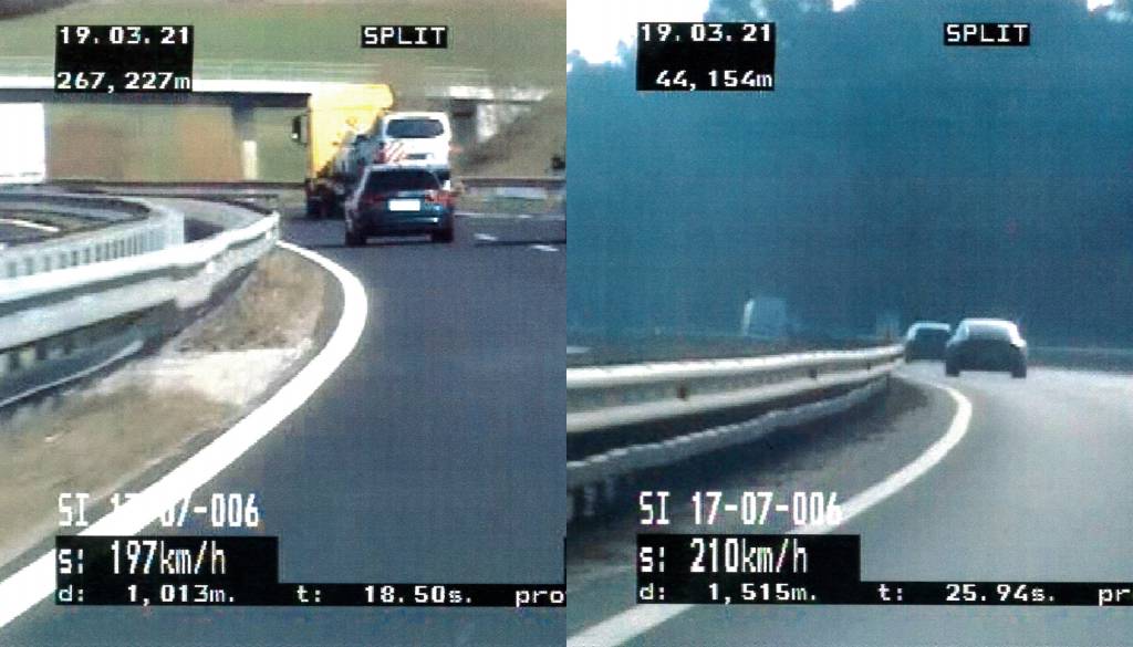 Na avtocesti A4 med Slivnico in Gruškovjem so izven naselja Slivnica, kjer je hitrost omejena na 130 kilometrov na uro, okoli 8.40, ugotovili, da je 44-letni voznik osebnega avtomobila znamke Mercedes Benz, na razdalji 1515 metrov vozil s povprečno hitrostjo 210 kilometrov na uro.