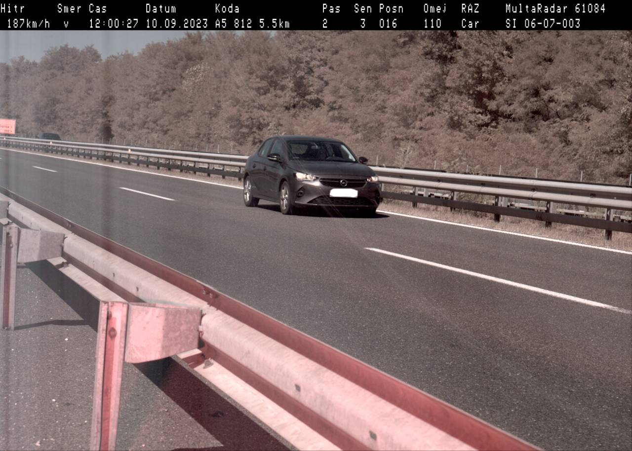 »Ob 12. uri je bila izmerjena hitrost vožnje voznika osebnega avtomobila znamke Opel Corsa, državljana Romunije, kateri je vozil s hitrostjo 187 kilometrov na uro.