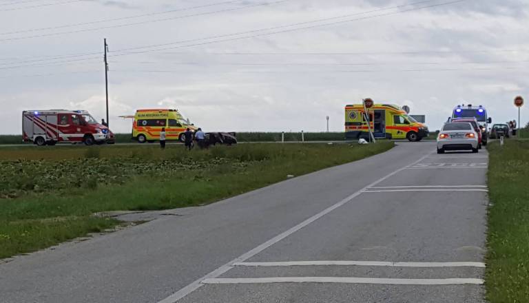 Po pričanjih očividcev bi naj obe vozili končali na njivi, slišati pa je bil kar precejšen zvok trka. Informacij o poškodbah zaenkrat nimamo. Na lokaciji pa so že gasilci, reševalci in policija.