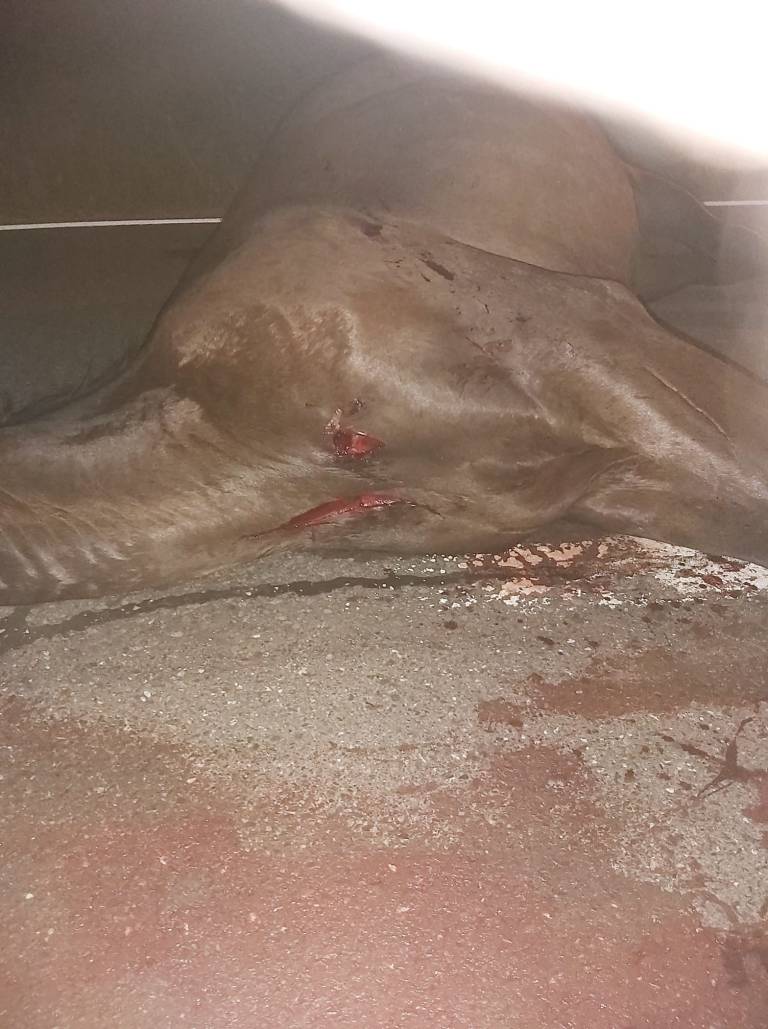 Da nikakor ne gre za izmišljeni dogodek, pričajo nazorne fotografije, ki niso za ljudi s šibkim srcem. Prikazujejo namreč do smrti povoženega konja, ki sta obležala sredi ceste.