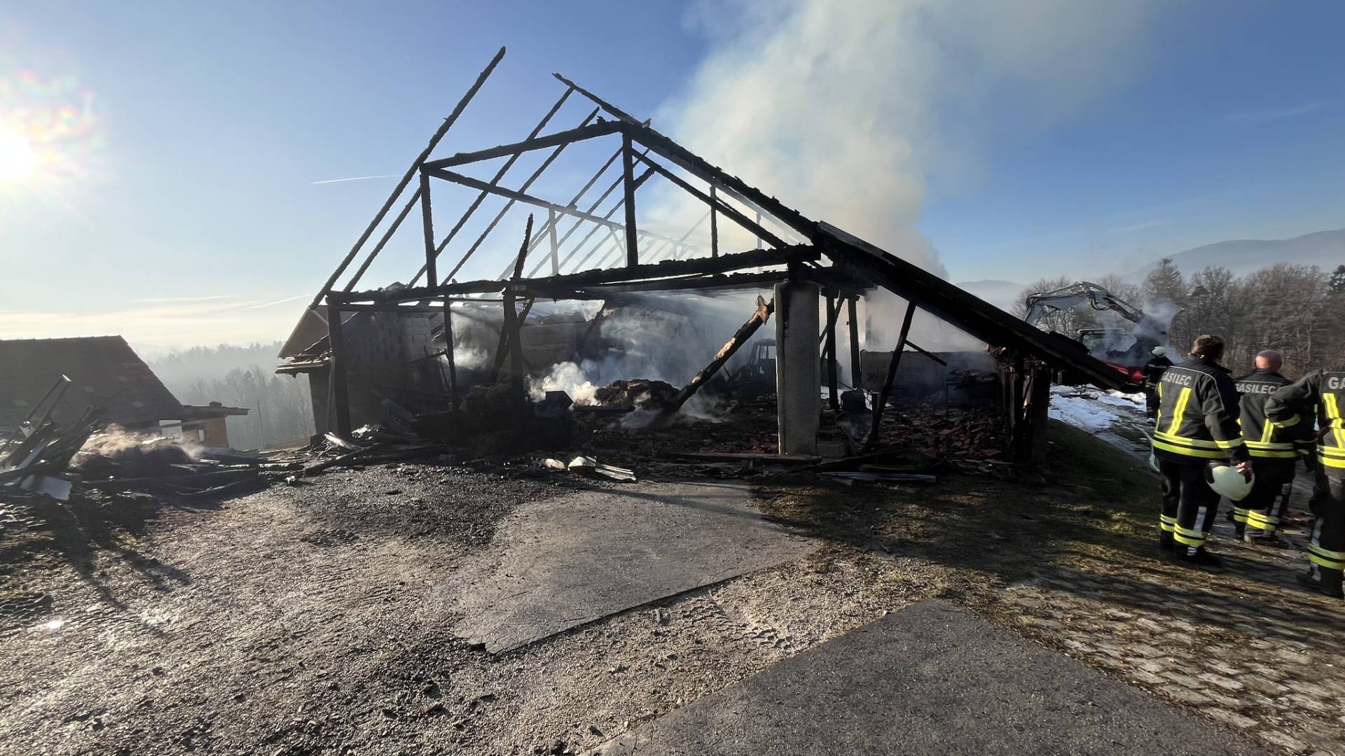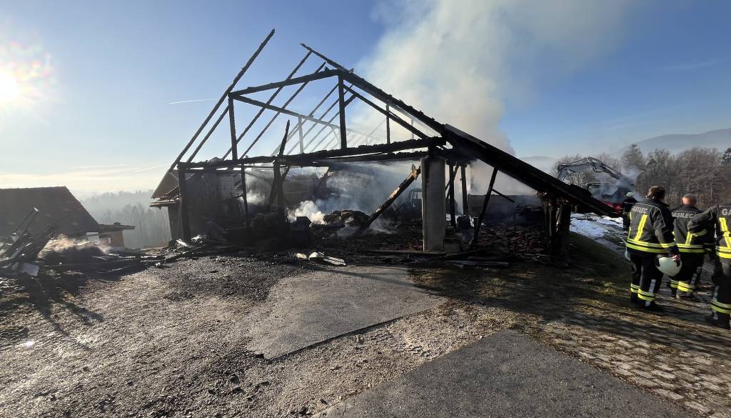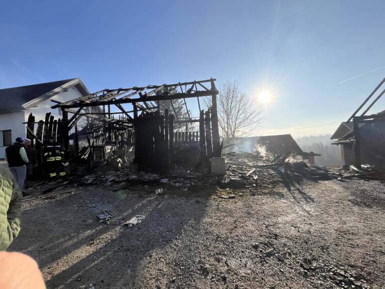V Spodnjem Grušovju je minulo soboto požar v zgodnjih jutranjih urah popolnoma uničil hlev, strojno lopo in dragoceno opremo, ki je bila bistvena za delo družine Marjana Laha.