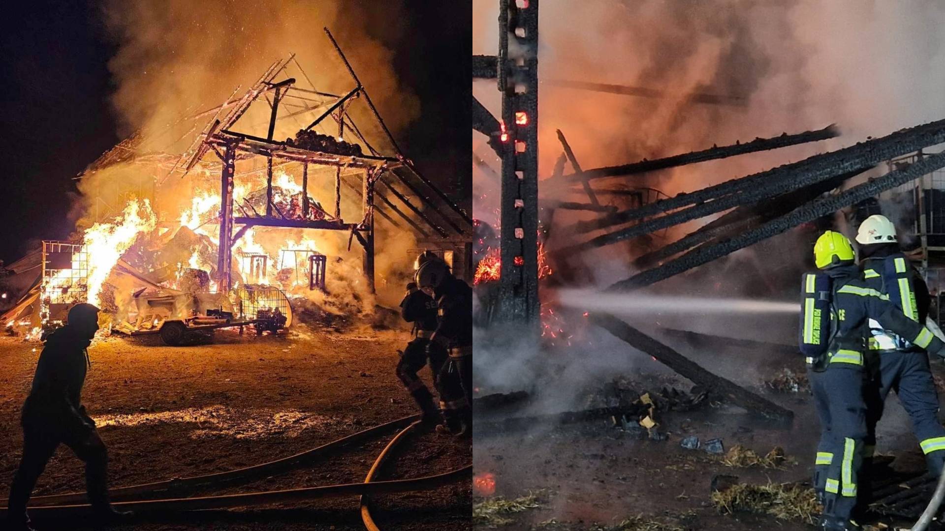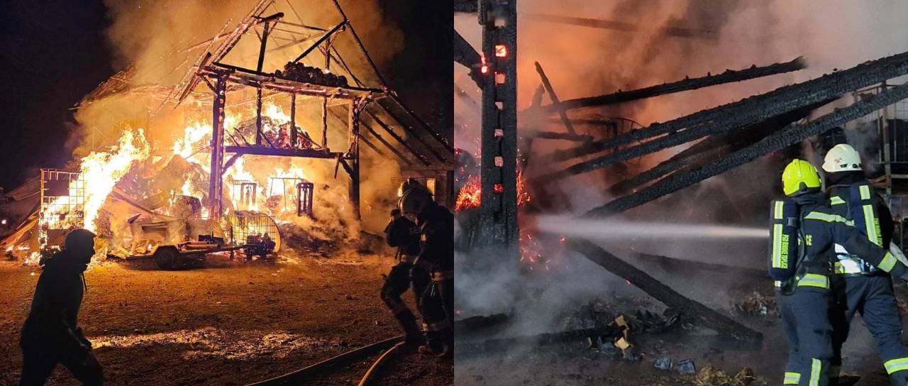 Kozolec je v celoti pogorel, prav tako sušilnica žita in kmetijska mehanizacija.
