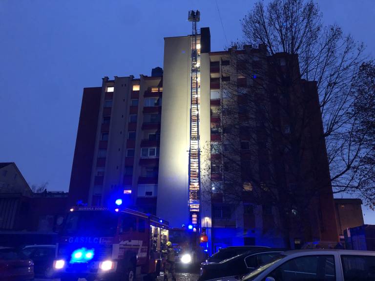 Pred enim izmed stanovanjskih blokov v Murski Soboti posredujejo štiri gasilska vozila.