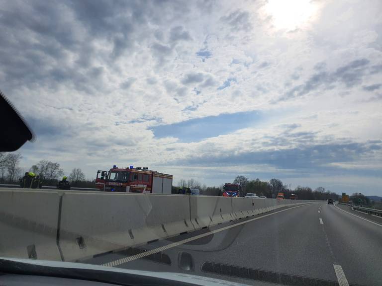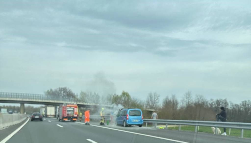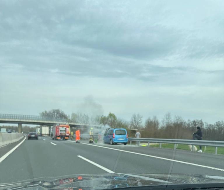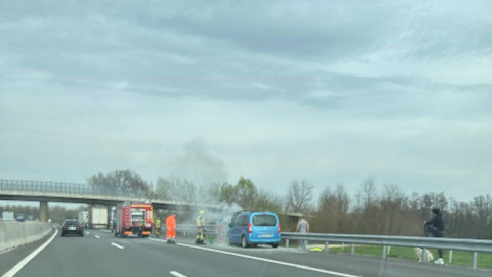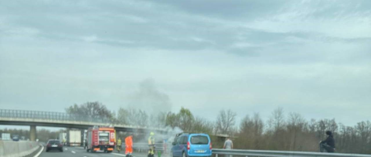 Na pomurski avtocesti zaradi gorečega vozila oviran promet.