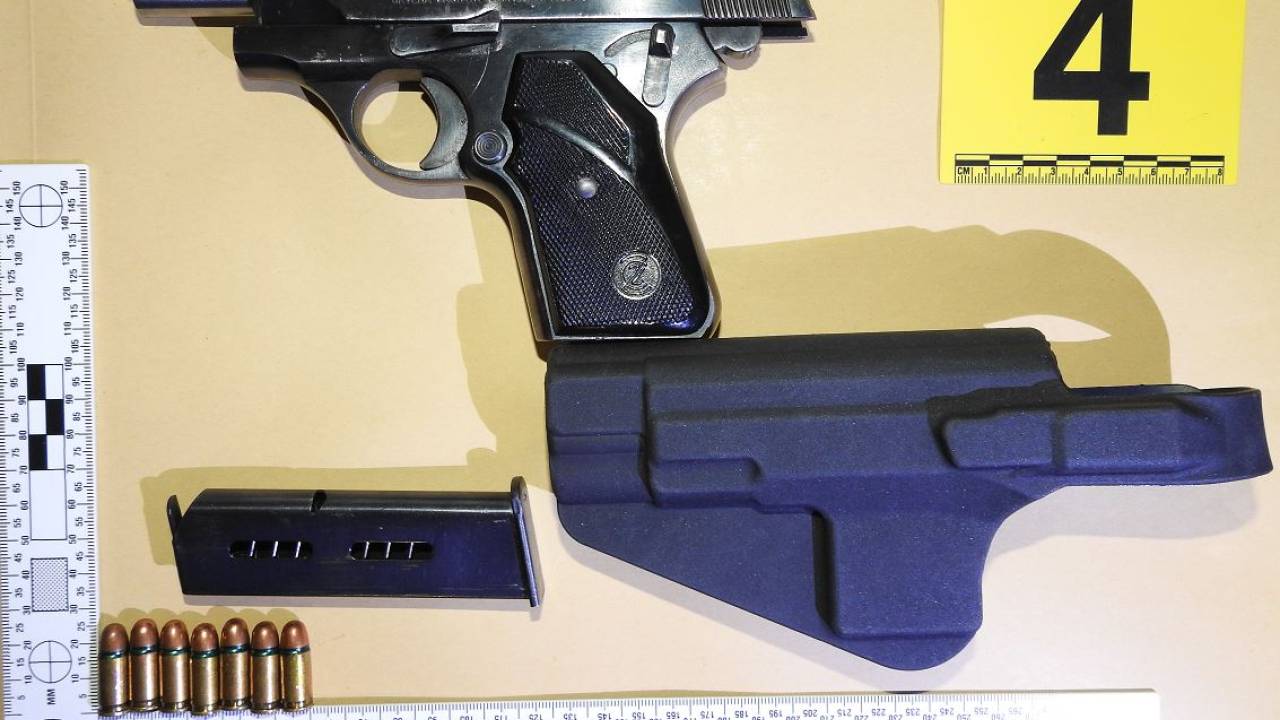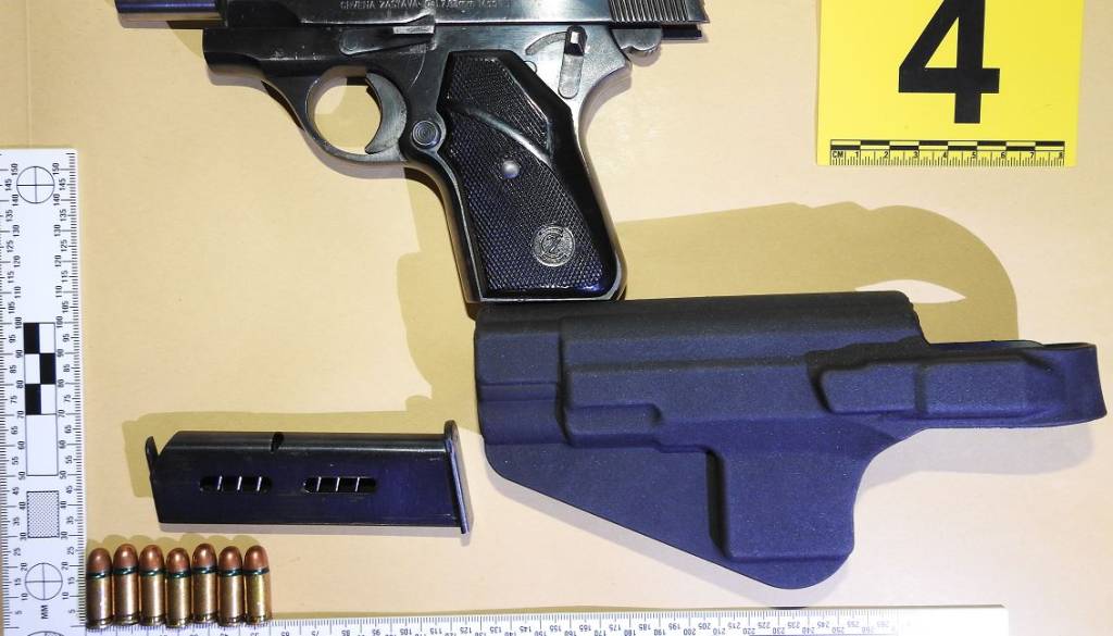V eni izmed hišnih preiskav je bilo zaseženo tudi strelno orožje, pištola, z vstavljenim nabojnikom in pripadajočimi naboji.