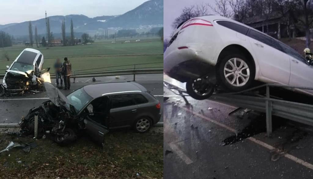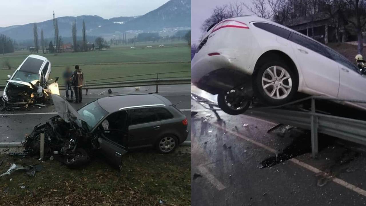 V prometni nesreči pri Dobrnežu sta udeleženi dve vozili, ki sta po vsej verjetnosti čelno trčili. Trčenje je bilo sodeč po fotografijah silovito, saj je eno vozilo odbilo celo na ograjo. Cesta Slovenske Konjice - Tepanje je še vedno zaprta.