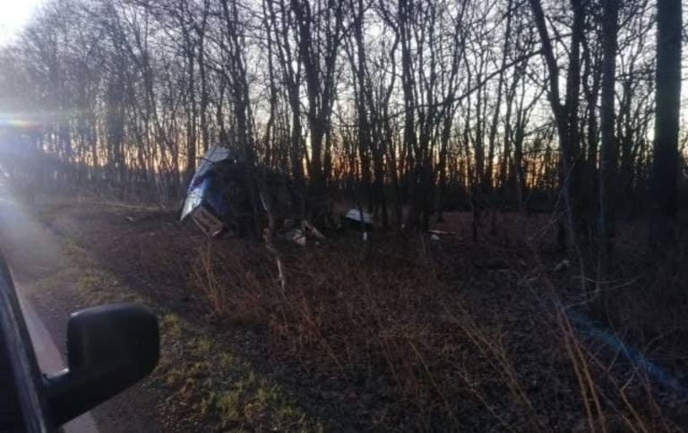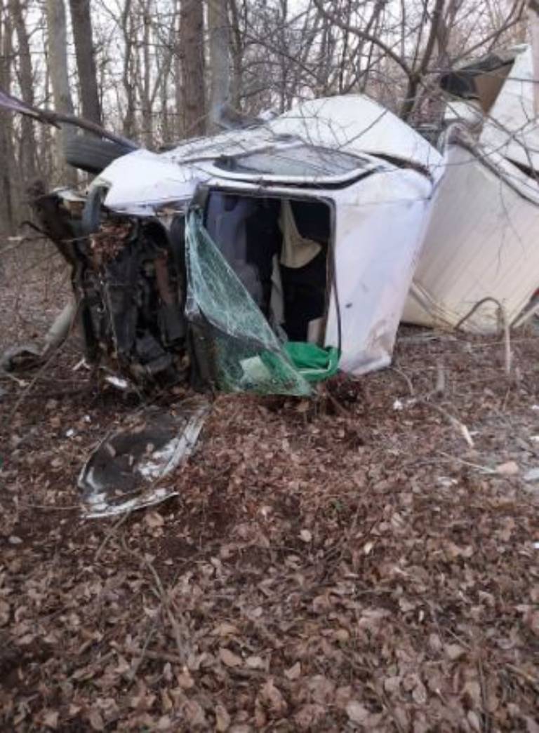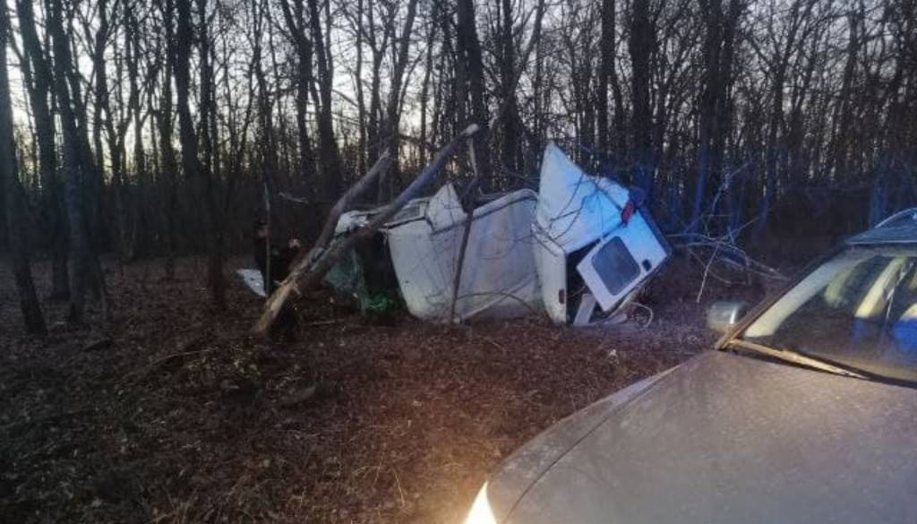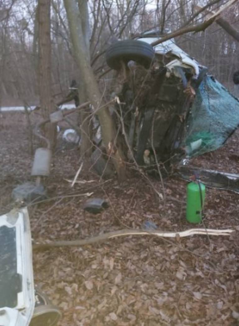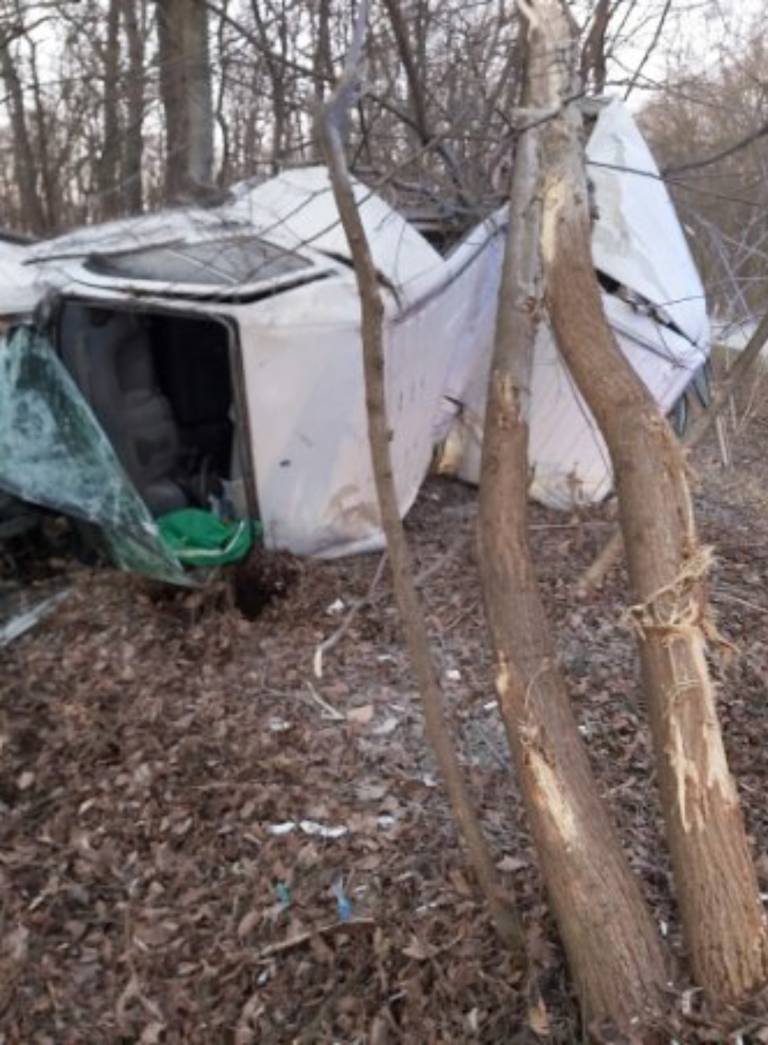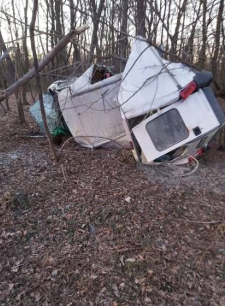 V nesreči je bil udeležen kombi, ki je vozil iz smeri Gančani. Po poročanju bralcev je kombi prelomilo na pol, med trčenjem pa naj bi podrl več dreves.