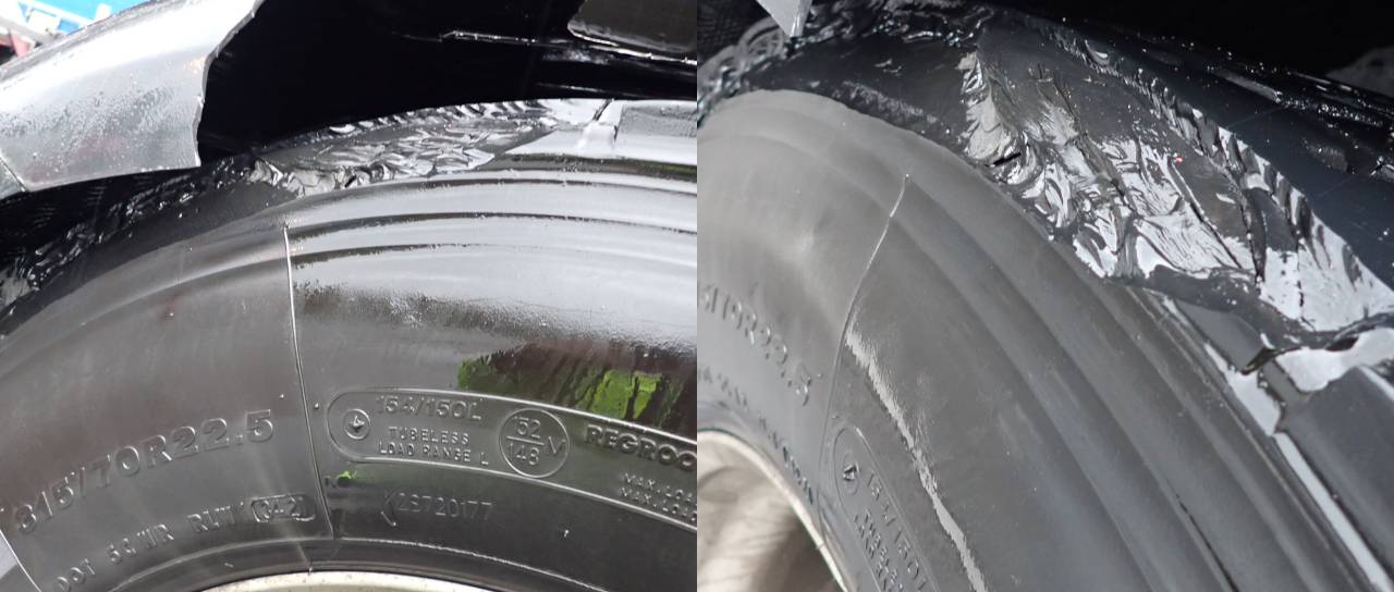 Ustavili in kontrolirali so voznika vlečnega vozila, državljana Madžarske, ki je prevažal nevarno blago, in ugotovili, da je imel na pogonski osi vlečnega vozila popolnoma uničeno desno pnevmatiko. Vozilo so izločili iz prometa.
