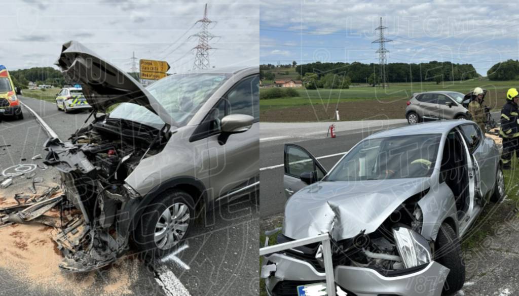 Zaradi izsiljene prednosti trčili osebni vozili.