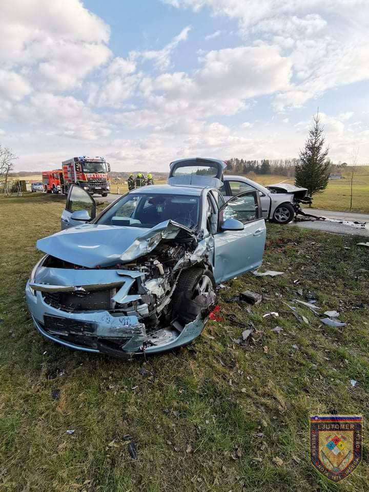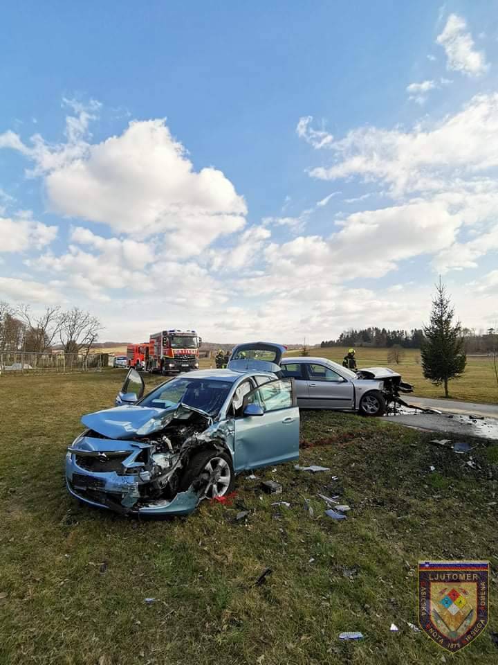 V Radoslavcih sta čelno trčila dva osebna avtomobila.