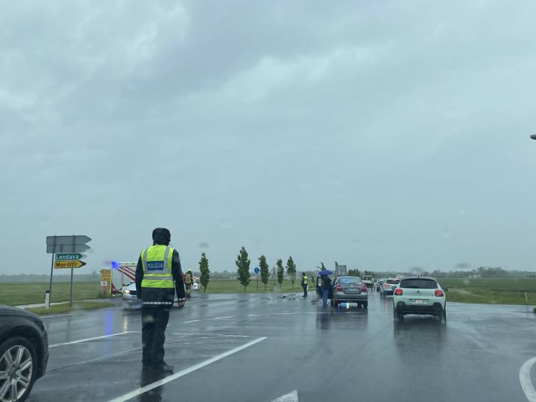 Do prometne nesreče je prišlo na uvozu za avtocesto v smeri proti Lendavi. V trčenju sta bili po prvih informacijah udeleženi dve osebni vozili.