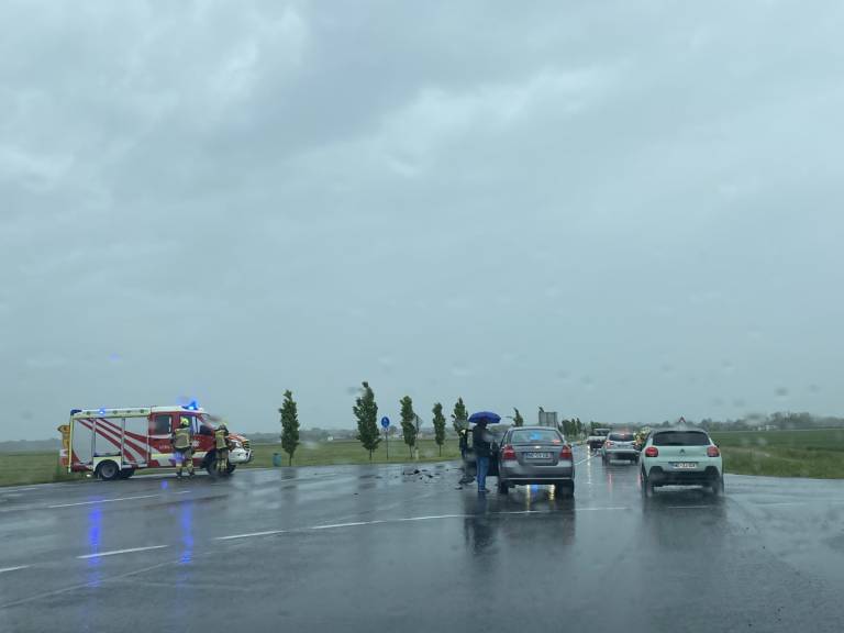 Nekaj minut pred 16.00 uro je prišlo do prometne nesreče na cesti iz Murske Sobote proti Bakovcem.