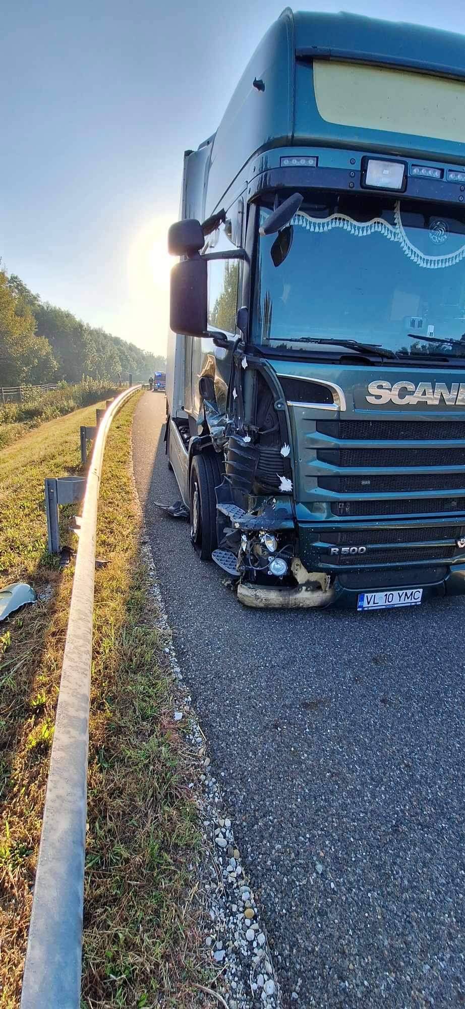 V nesreči sta bili udeleženi tovorno in osebno vozilo, pri tem je ena oseba utrpela poškodbe, zaradi nesreče pa je zaprt vozni pas.