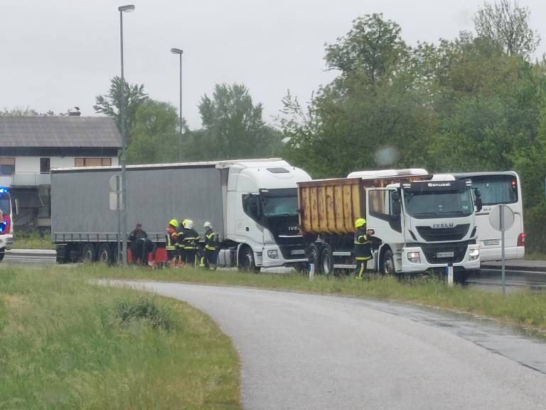 Po prvih informacijah s terena so na delu gasilci, na glavni cesti stojita dve tovorni vozili.