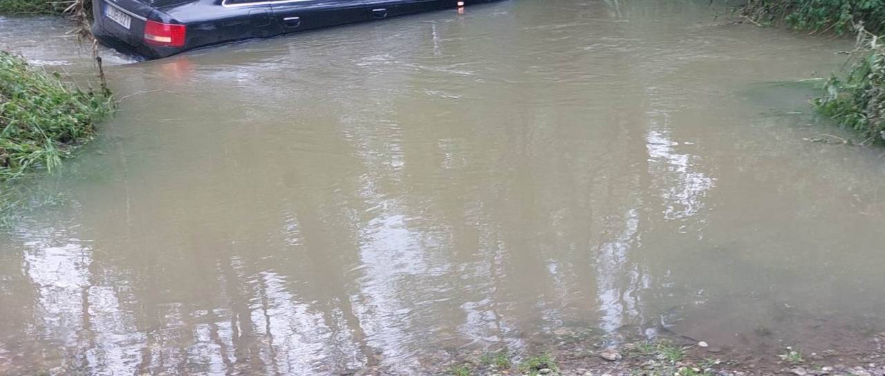Ko je pripeljal do poplavljenega območja, se voznik ni ustavil, ampak zapeljal naravnost v vodo.