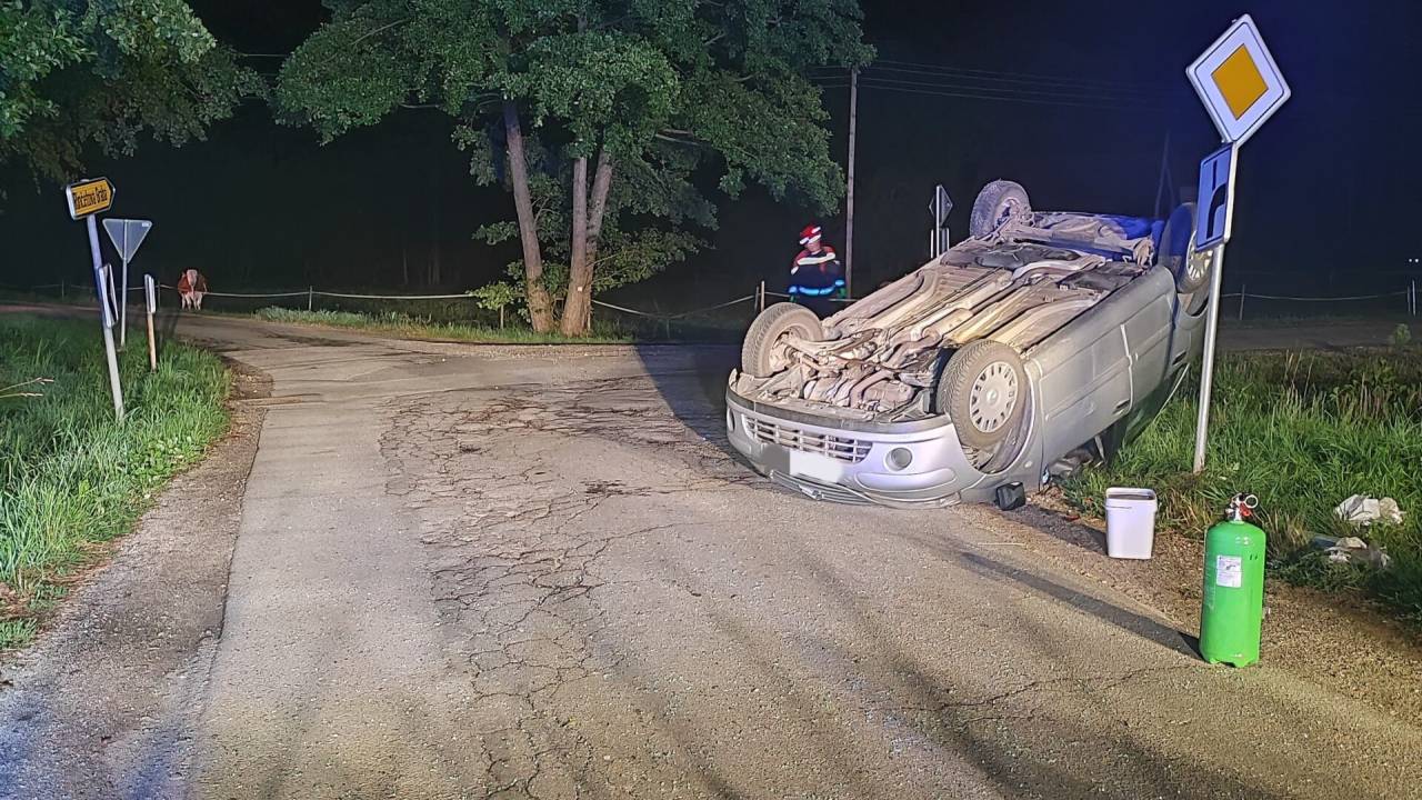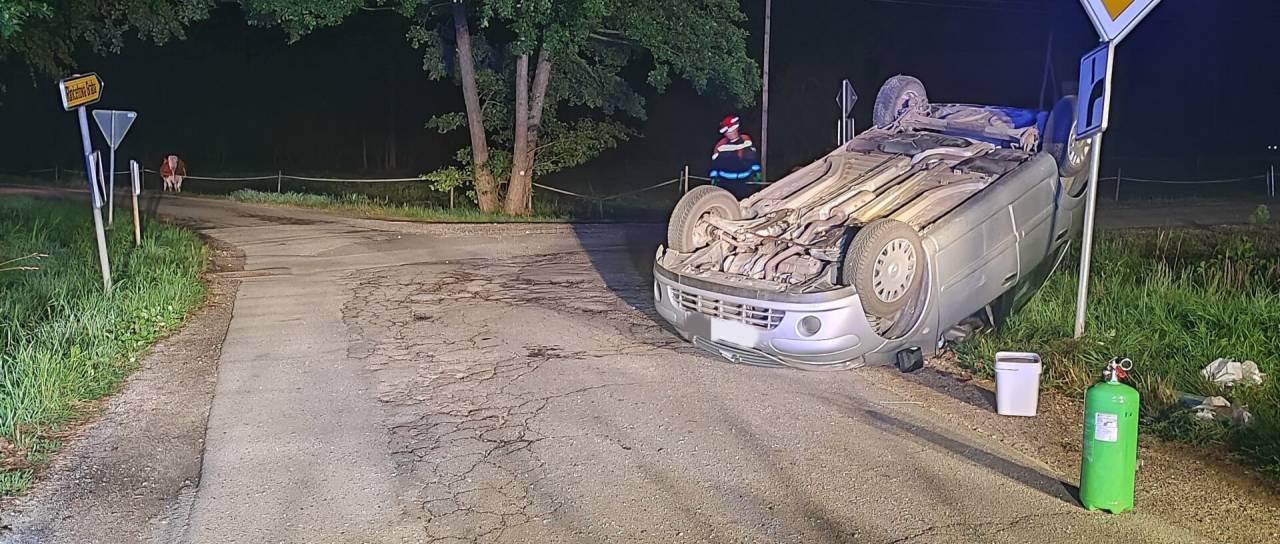 Včeraj ob 23:30 je v kraju Rinčetova Graba prišlo do prometne nesreče, v kateri je voznik osebnega vozila zapeljal s cestišča in se z vozilom prevrnil na streho.