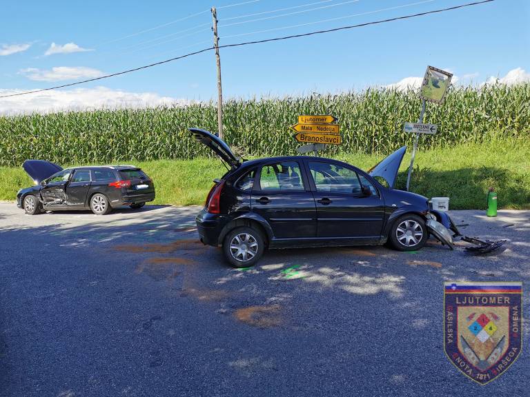 Uprava Republike Slovenije za zaščito in reševanje poroča, da se je v danes ob 14.29, v Branoslavcih v občini Ljutomer zgodila prometna nesreča. V križišču je prišlo do trčenja dveh osebnih vozil.