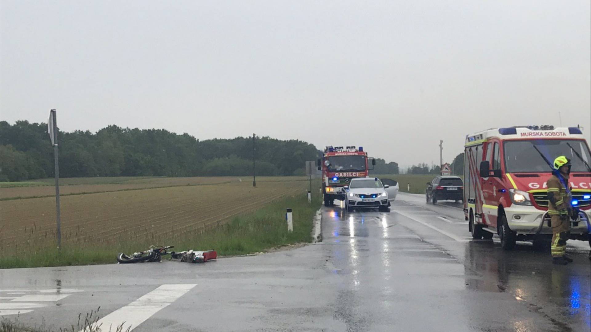 Do prometne nesreče je po podatkih Uprave Republike Slovenije za zaščito in reševanje prišlo ob 11.47 na območju Sebeborcev v črnem križišču na puconski ravnici.