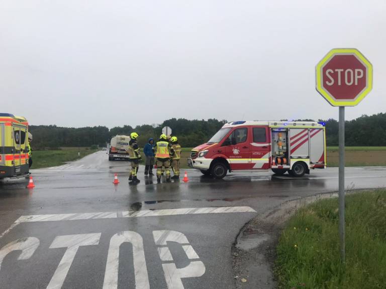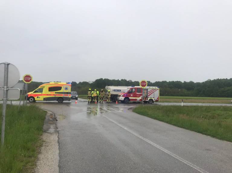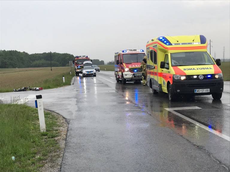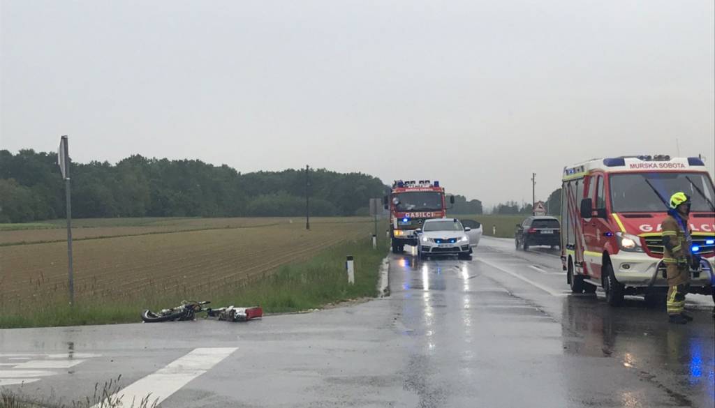 Do prometne nesreče je po podatkih Uprave Republike Slovenije za zaščito in reševanje prišlo ob 11.47 na območju Sebeborcev v črnem križišču na puconski ravnici.