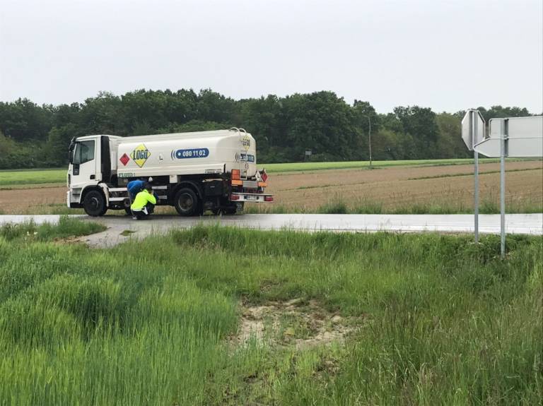 Po besedah očividcev je prišlo do hujšega trčenja med vozilom s cisterno in mopedom. Slednjega je po trčenju prelomilo na pol, stanje mopedista še ni znano.