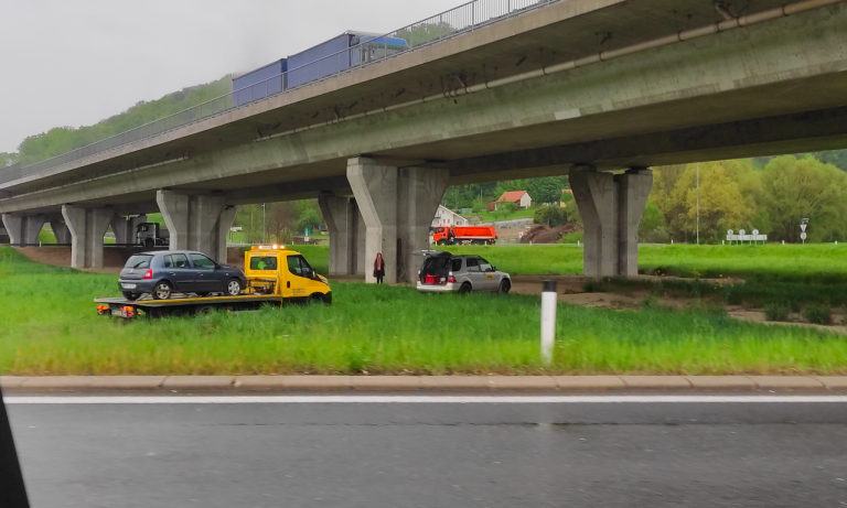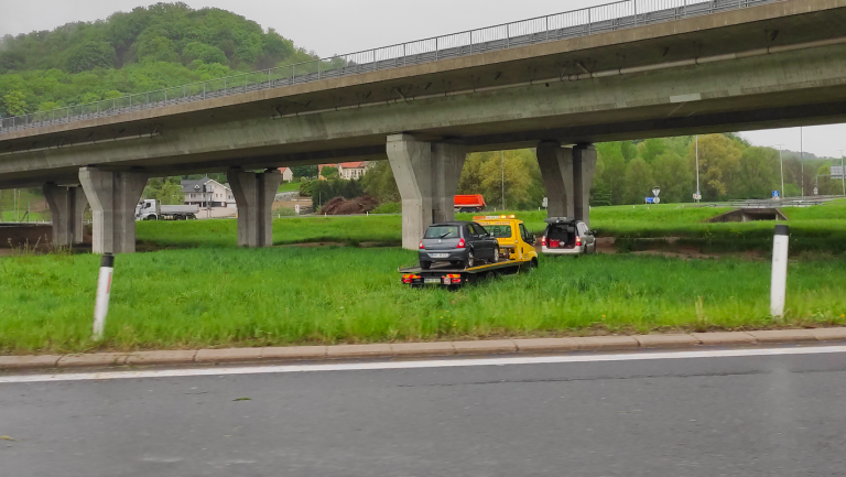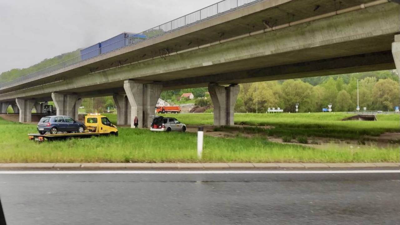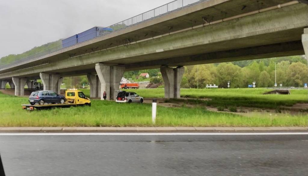 Po doslej znanih informacijah je s ceste, ki je zaradi dežja mokra in spolzka, odneslo osebno vozilo.