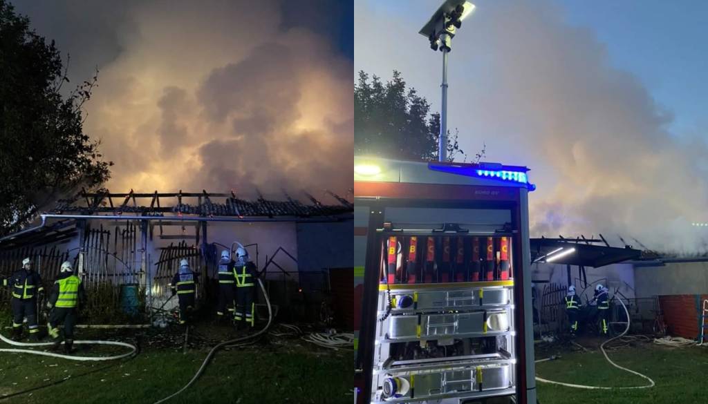 Ponoči je gorelo gospodarsko poslopje z delavnico, uspeli rešiti psa.