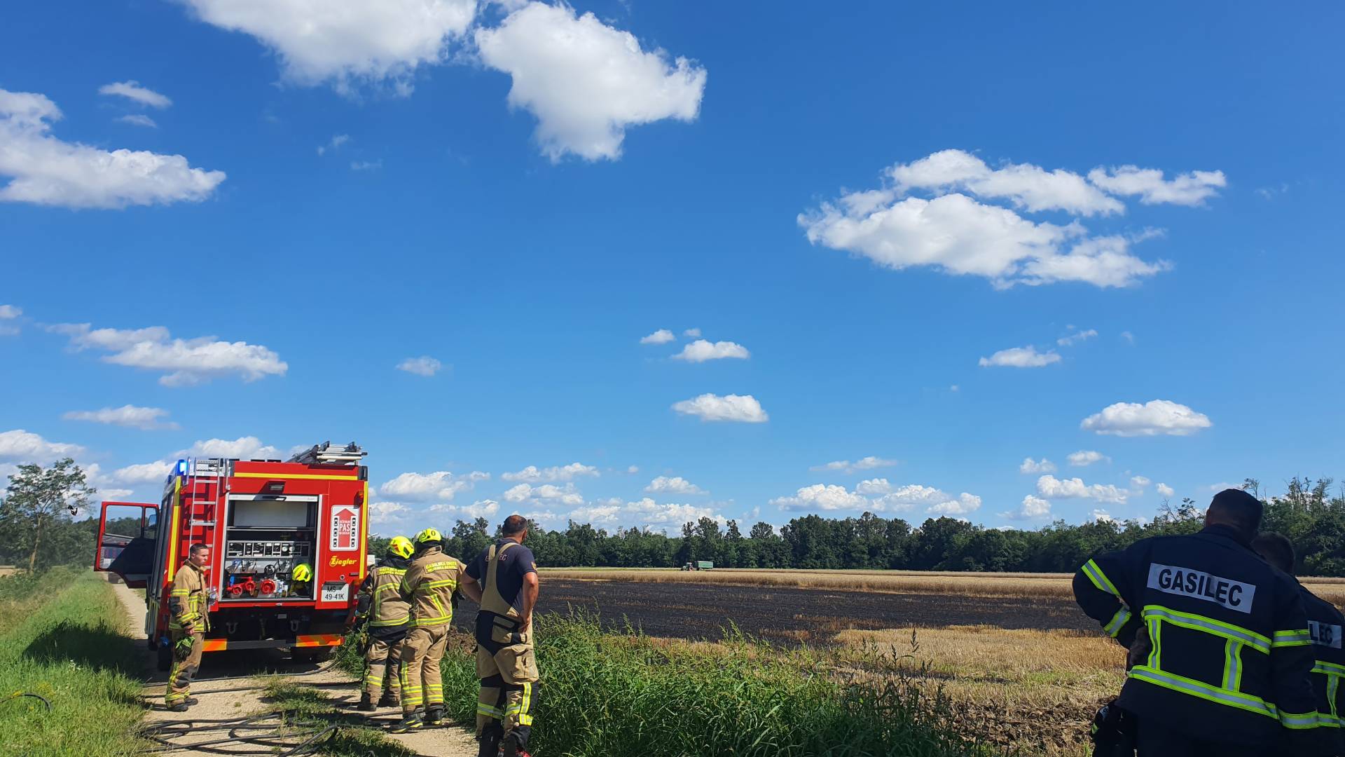 Zagorelo je strnišče, kot je razvidno iz fotografij, so ognjeni zublji v celoti uničili polje.