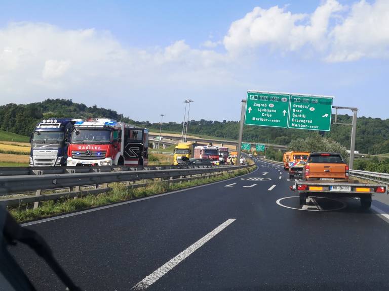 Na pomurski avtocesti je bil zaprt prehitevalni pas med Dragučovo in Pernico proti Murski Soboti. Po poročanju Uprave Republike Slovenije za zaščito in reševanje je prišlo do požara na sredstvih cestnega prometa.