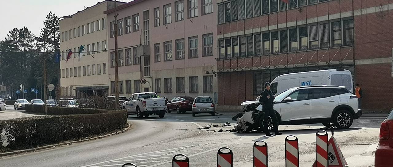 Prometna nesreča v križišču v središču mesta.