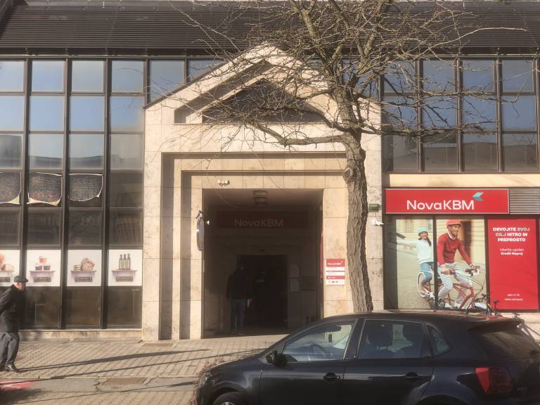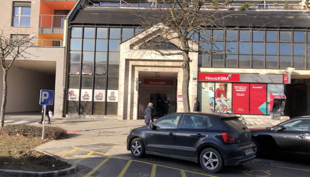 Po pričanju očividcev, je policijski avto po enosmerni Kocljevi ulici v nasprotni smeri zapeljal do poslovalnice Nove KBM.