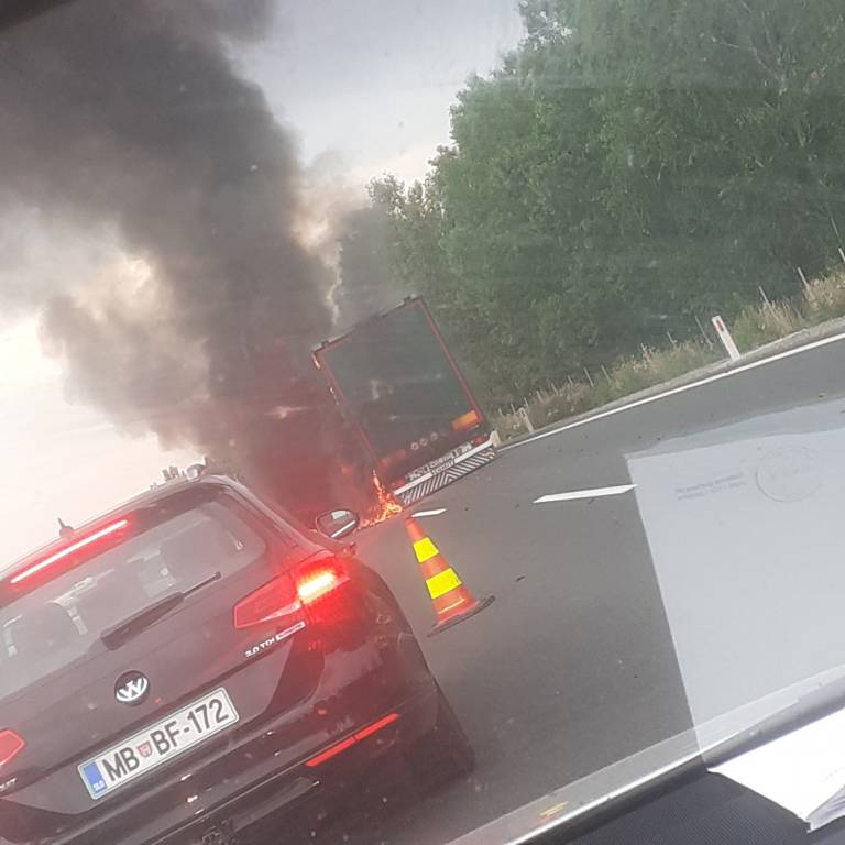 Po poročanju Prometno informacijskega centra za državne ceste je pomurska avtocesta zaprta med priključkoma Murska Sobota in Vučja vas proti Mariboru zaradi gorečega vozila.