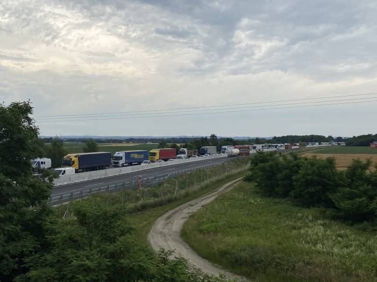 Zastoji nastajajo že nekaj metrov pred uvozom na avtocesto iz smeri Murske Sobote.