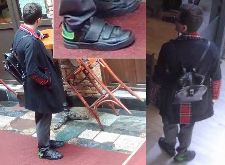 Iz posnetkov je razvidno, da sta dva moška vstopila v restavracijo. Eden od njiju se je usedel k sosednji mizi družine. Iz zaprtega žepa jakne je iznajdljivo izmaknil denarnico. Drugi je pazil, da ju kdo ne zaloti. Skupaj sta nato zapustila restavracijo.