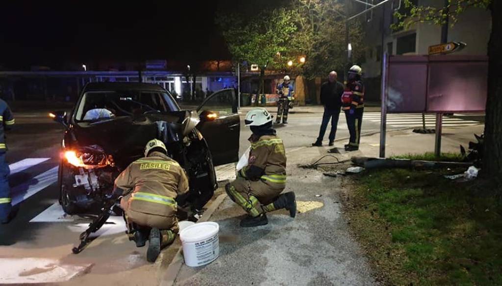 Osebno vozilo je trčilo v semafor, pri tem se je ena oseba poškodovala.