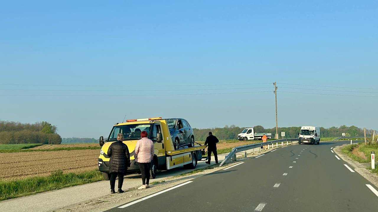 Vozilo je v ovinku na cesti iz Beltincev proti Lipi zapeljalo na obcestno varnostno ograjo, nato pa se prevrnilo na kolesarsko stezo.