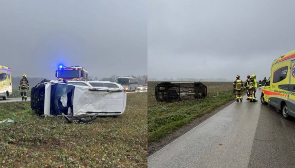 Vozilo je na omenjeni relaciji zapeljalo s cestišča in se prevrnilo na bok, ena oseba se je v nesreči poškodovala.