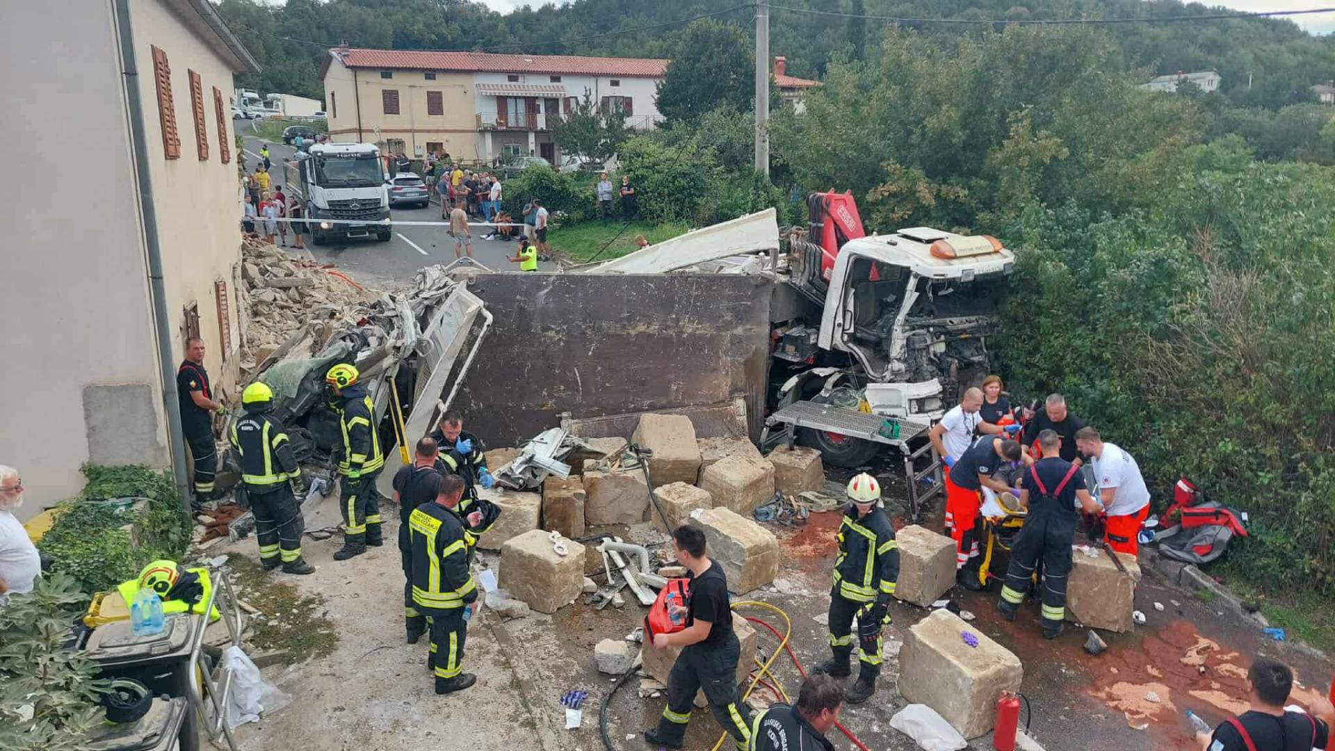 V ponedeljek popoldne je promet v Svetem Antonu v Slovenski Istri zaznamovala huda nesreča, ko je tovornjak trčil v hišo ob cesti.