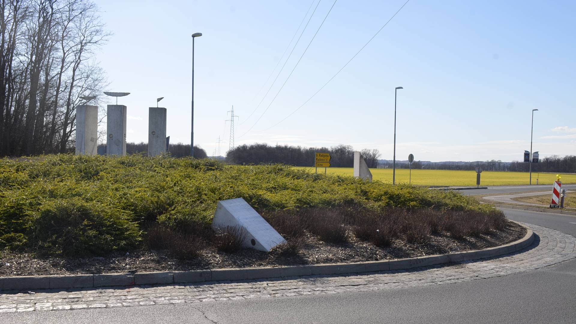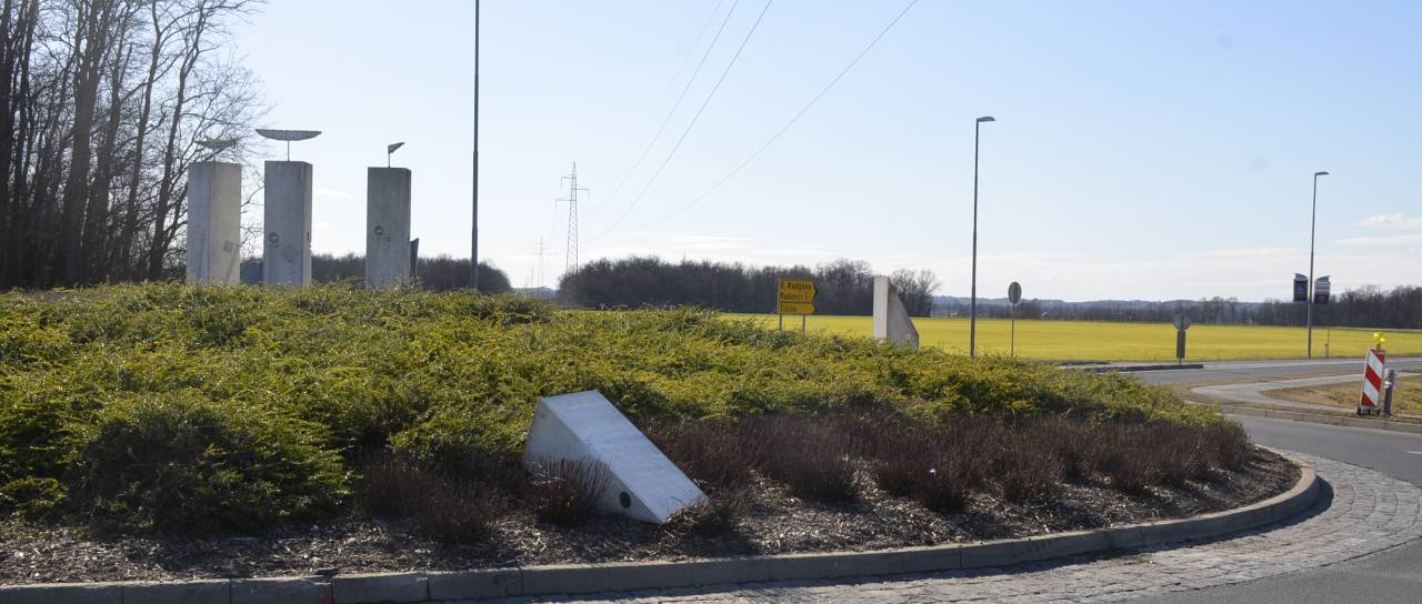 V prometni nesreči poškodovana tudi skulptura v krožišču.
