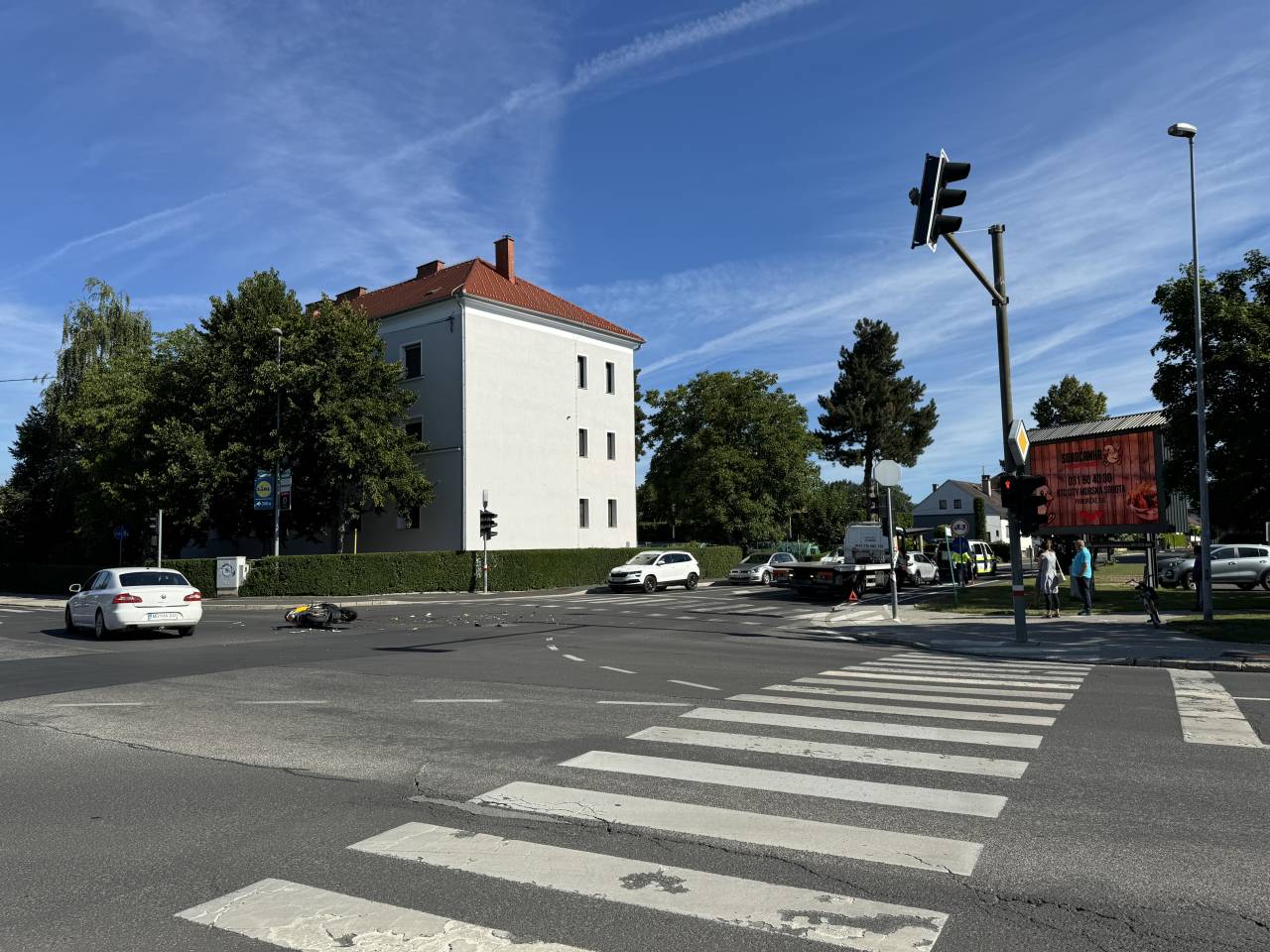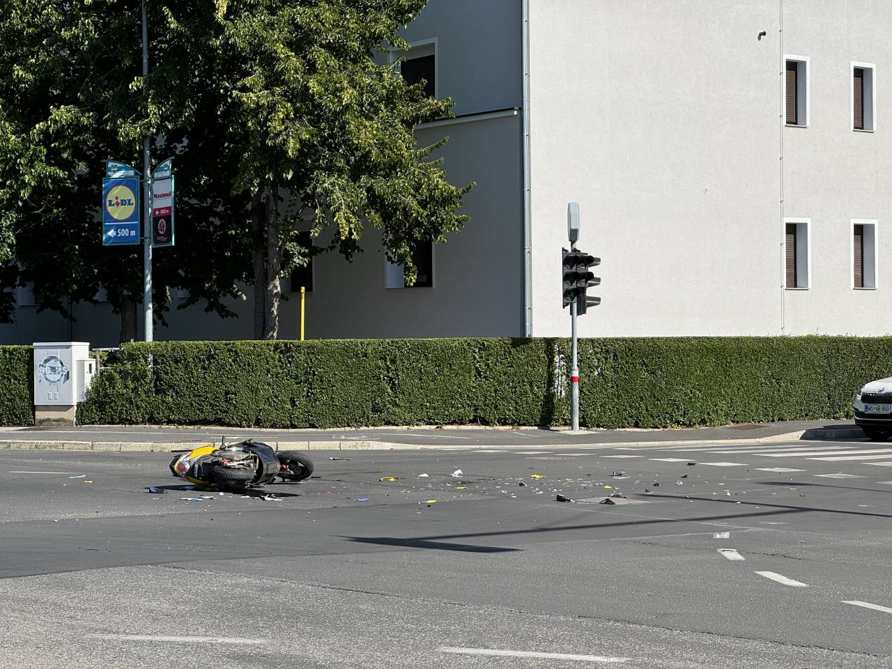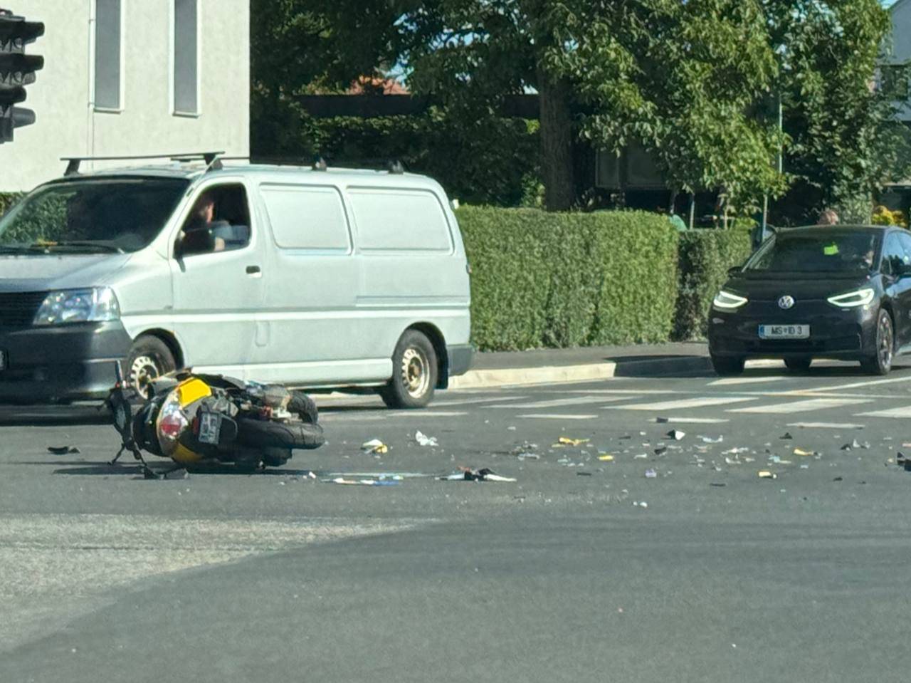 V križišču je po prvih informacijah zaradi izsiljevanja prednosti prišlo do trčenja med voznikom avtomobila in voznikom skuterja.
