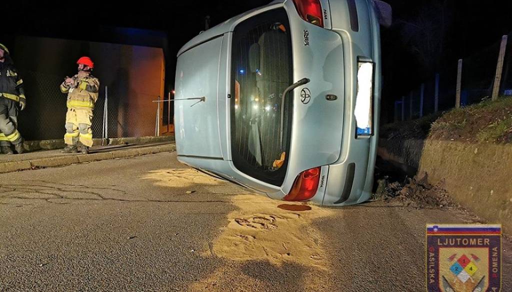Po podatkih Uprave Republike Slovenije za zaščito in reševanje se je danes ob 18.23 na Mestnem bregu v Ljutomeru osebno vozilo prevrnilo na bok.
