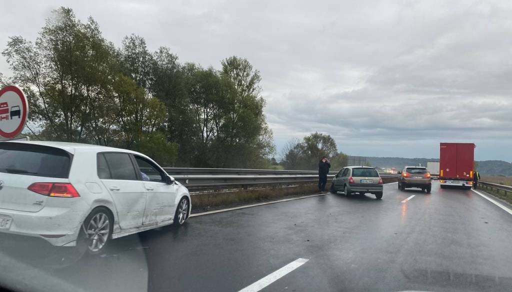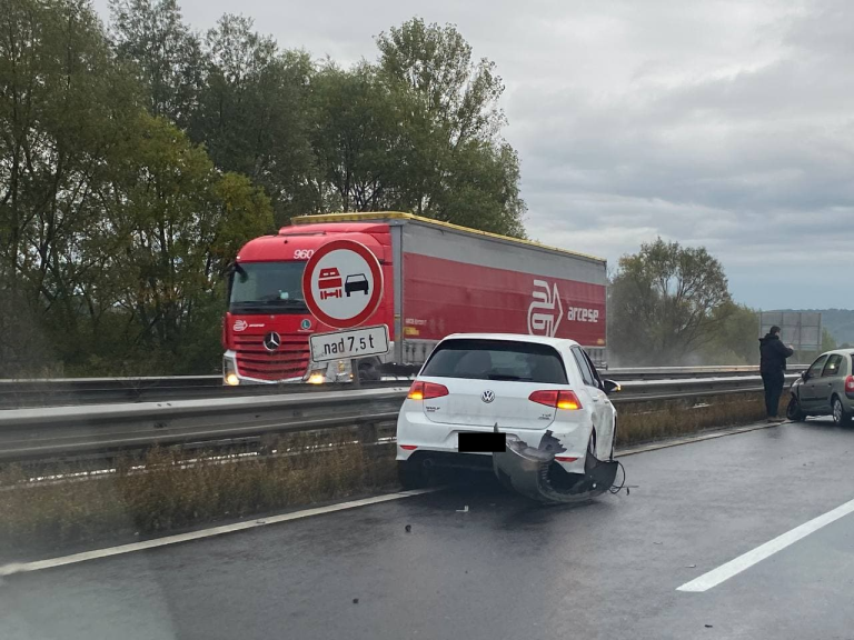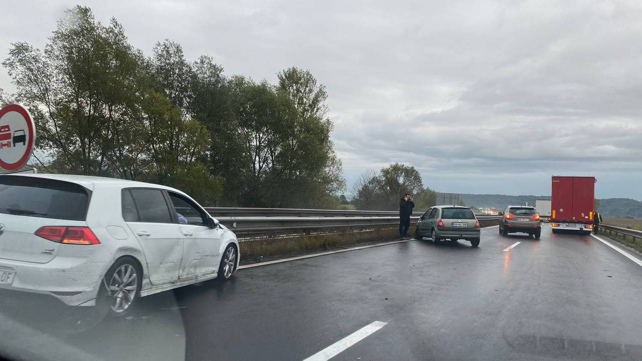 Okrog osme ure sta na avtocesti pri počivališču Lormanje v občini Lenart trčili dve osebni vozili in tovorno vozilo.