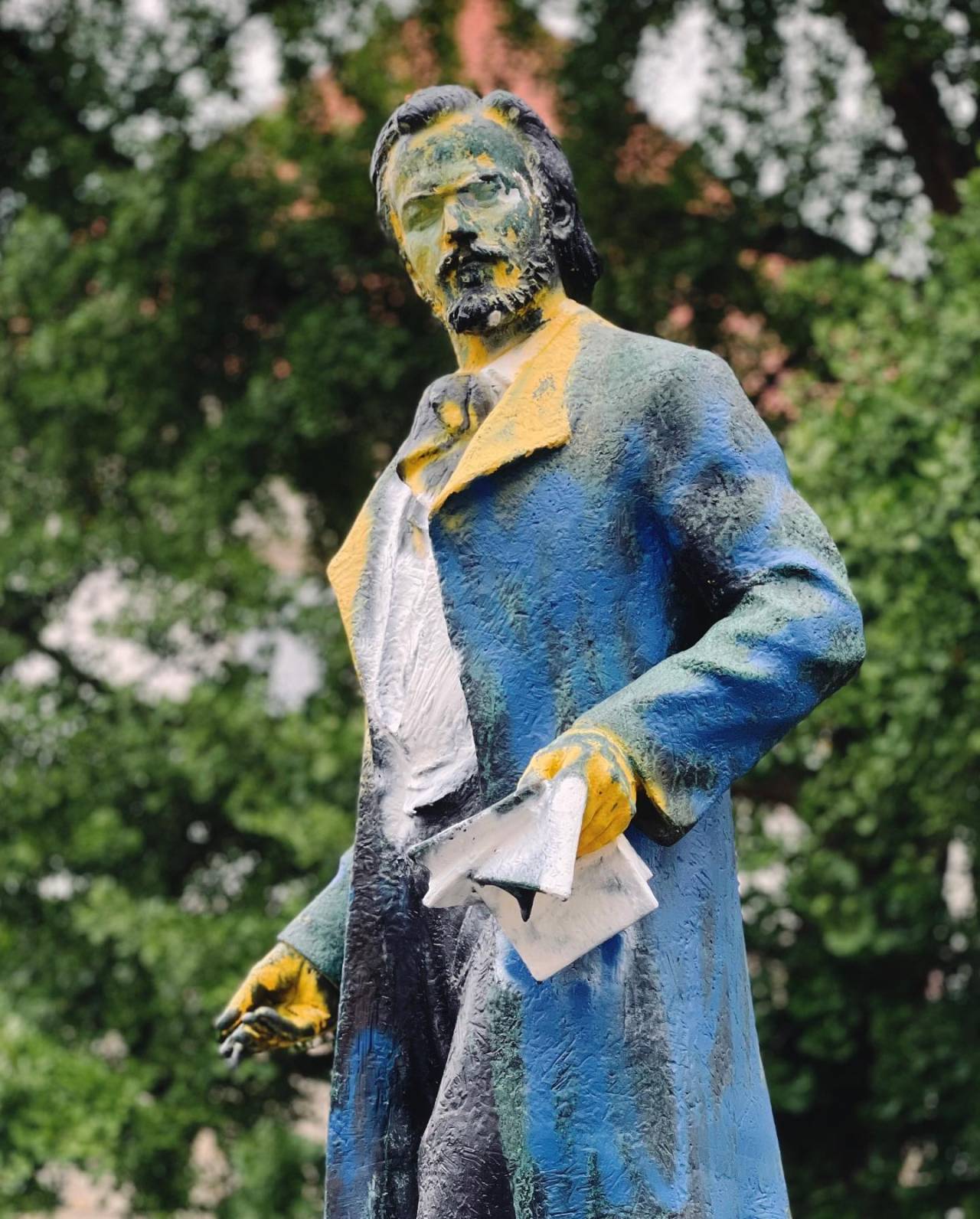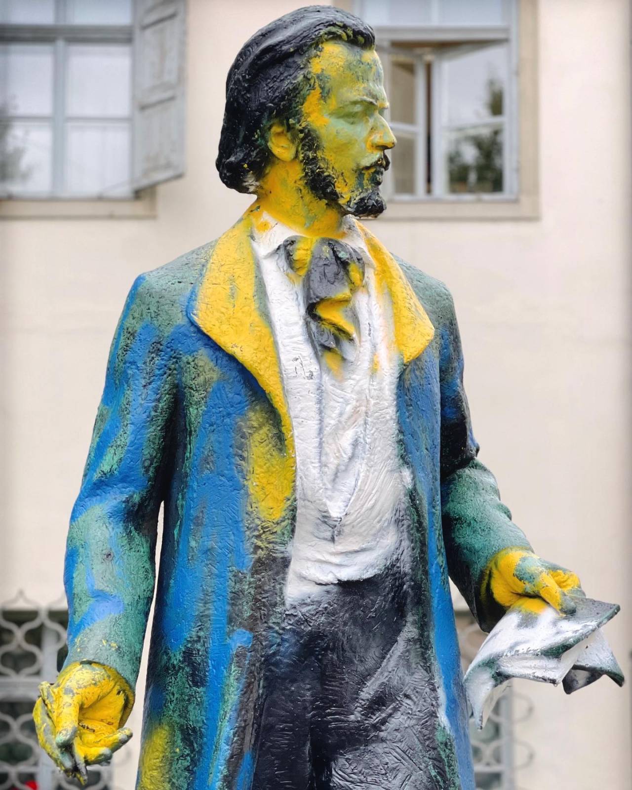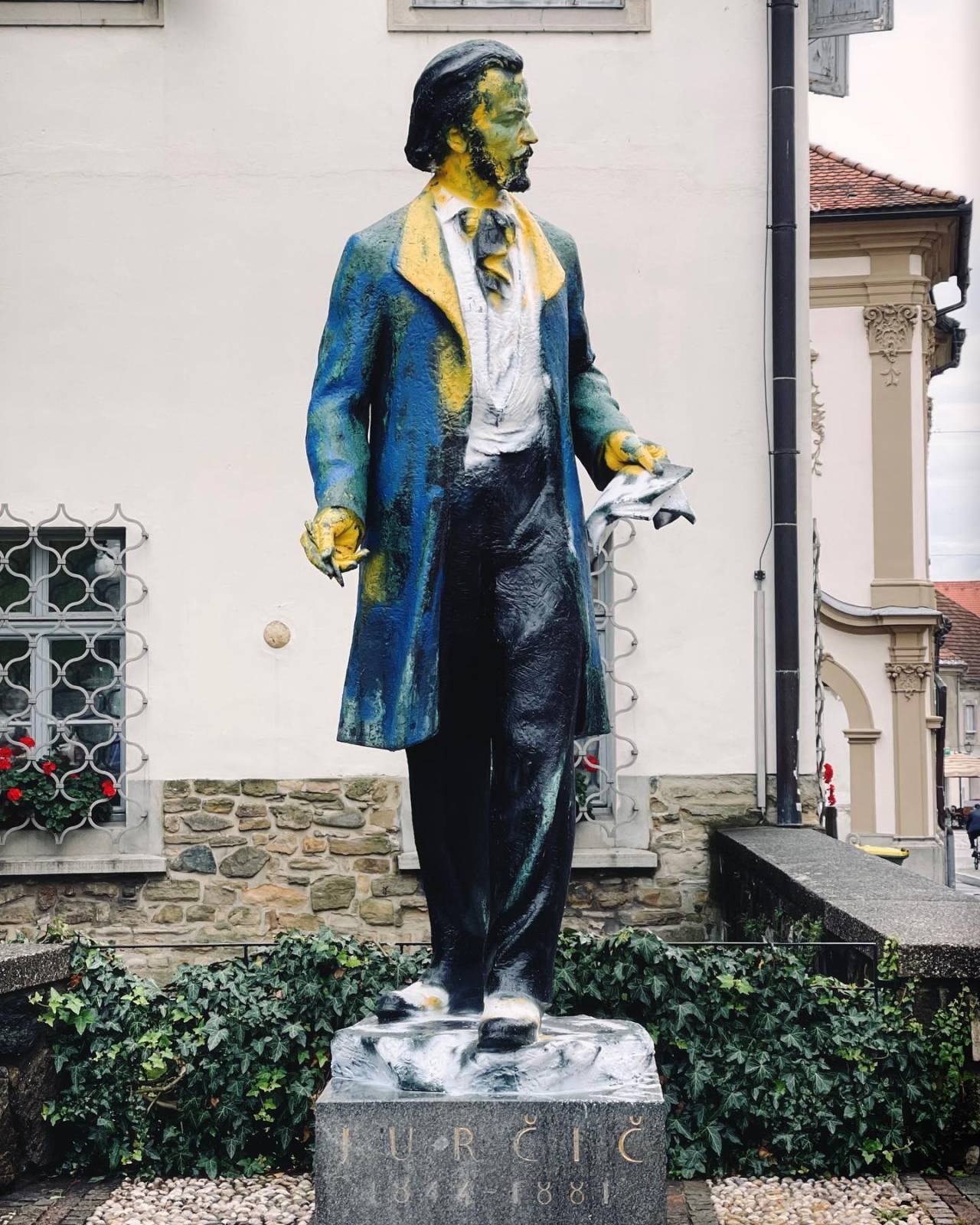 Še ena iz Maribora za v rubriko 'Saj ni res, pa je'. Neznanci so, kot kaže, ponoči oskrunili spomenik Josipu Jurčiču, ki stoji na Trgu generala Maistra.