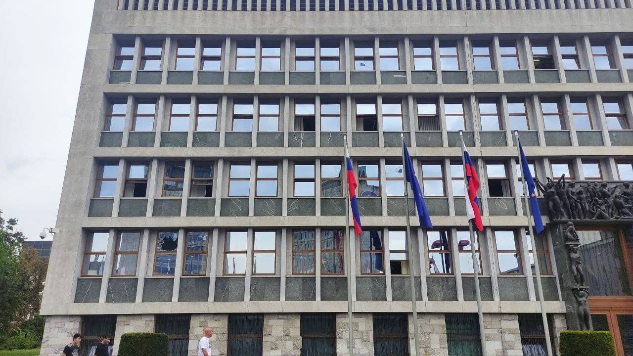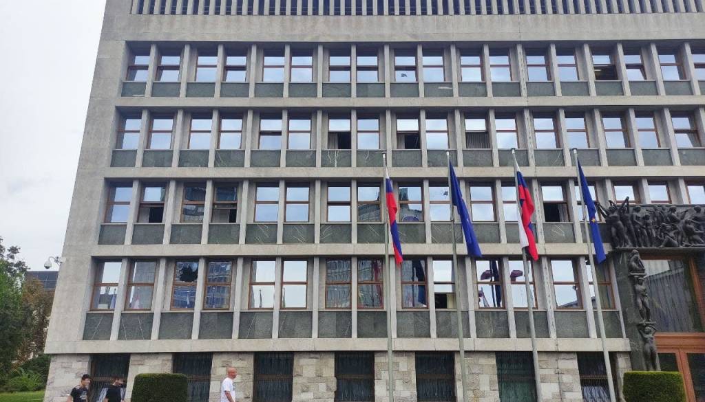 FOTO: Včerajšnji protestniki povzročili škodo na parlamentu, poglejte, kakšne so posledice